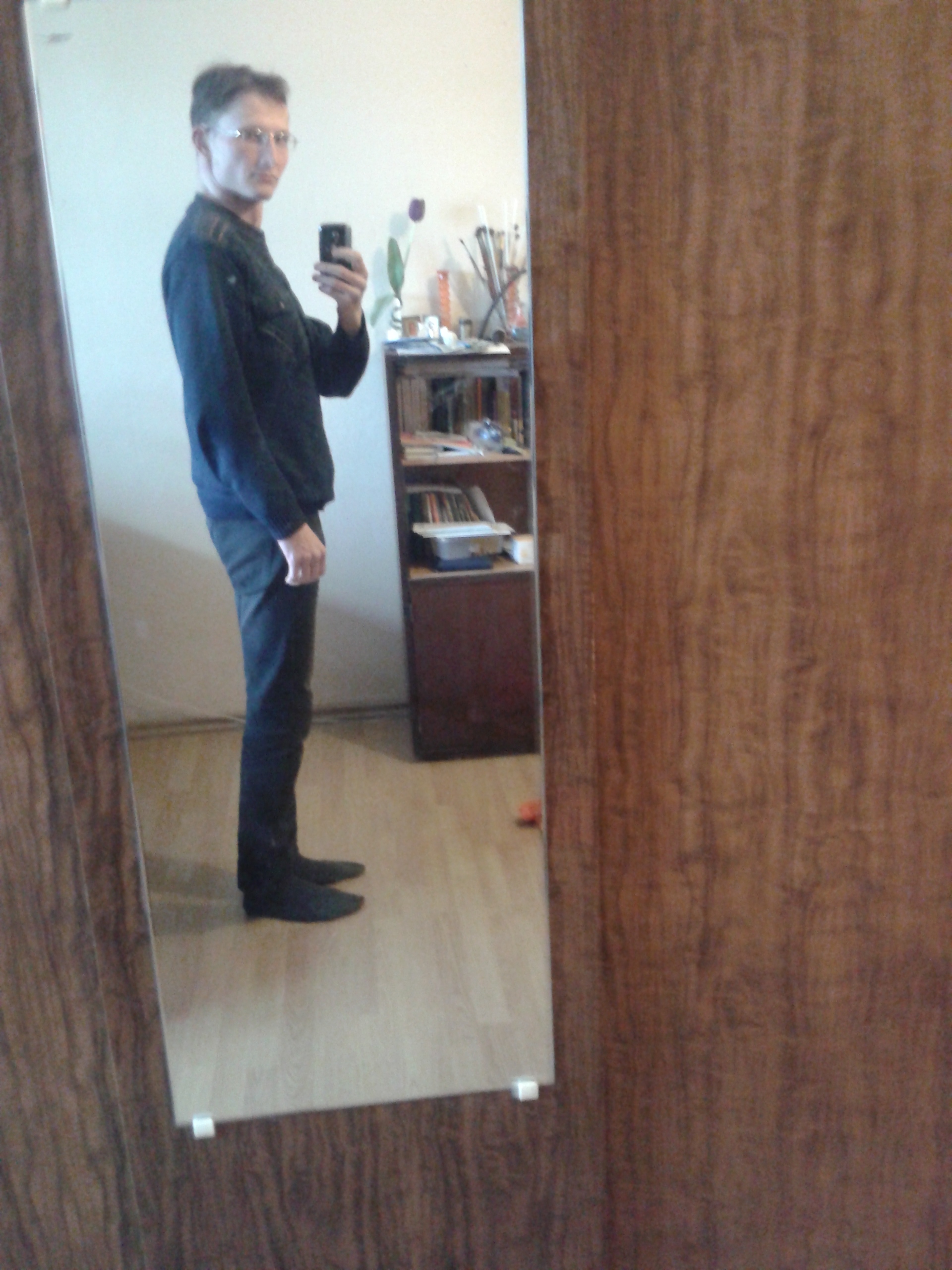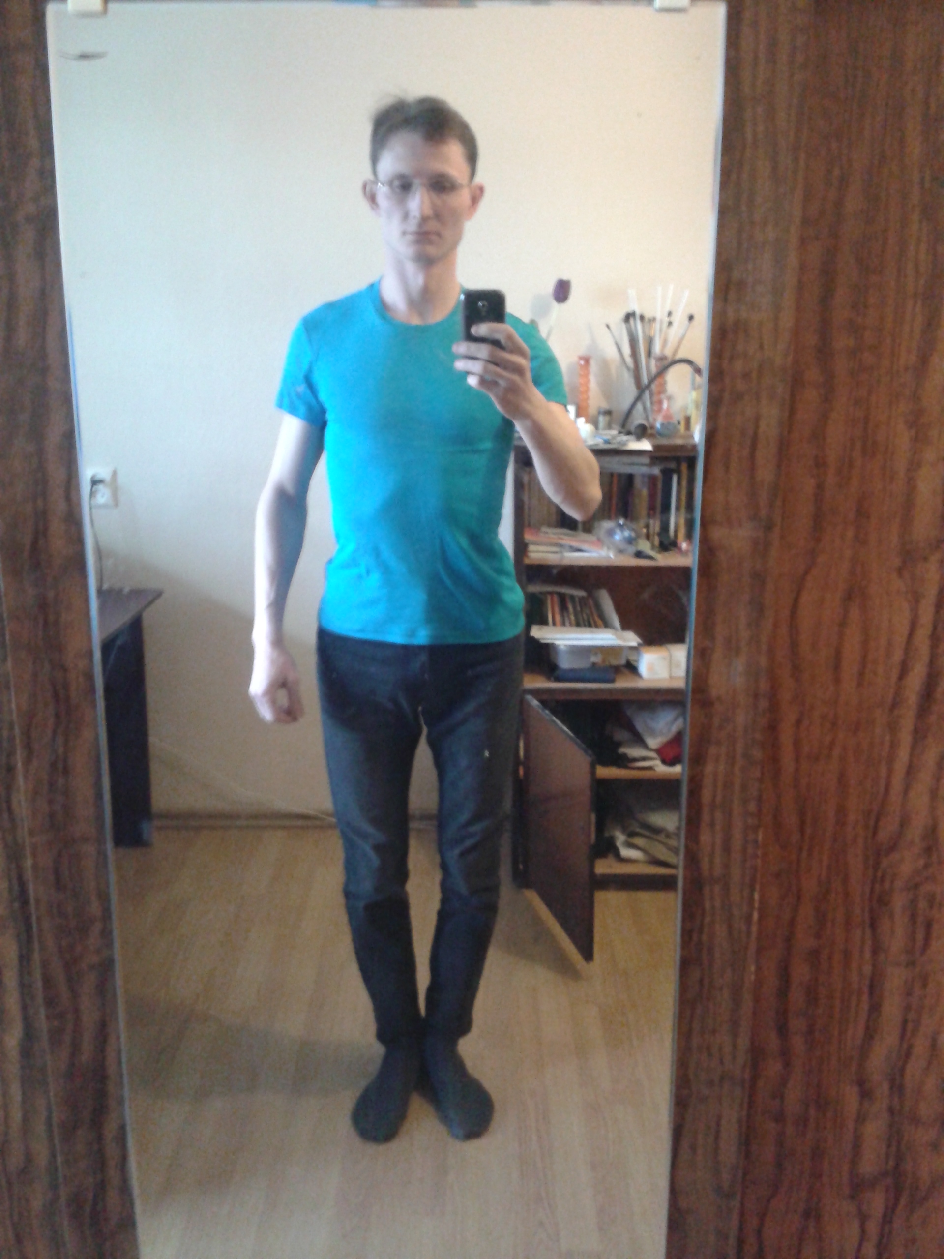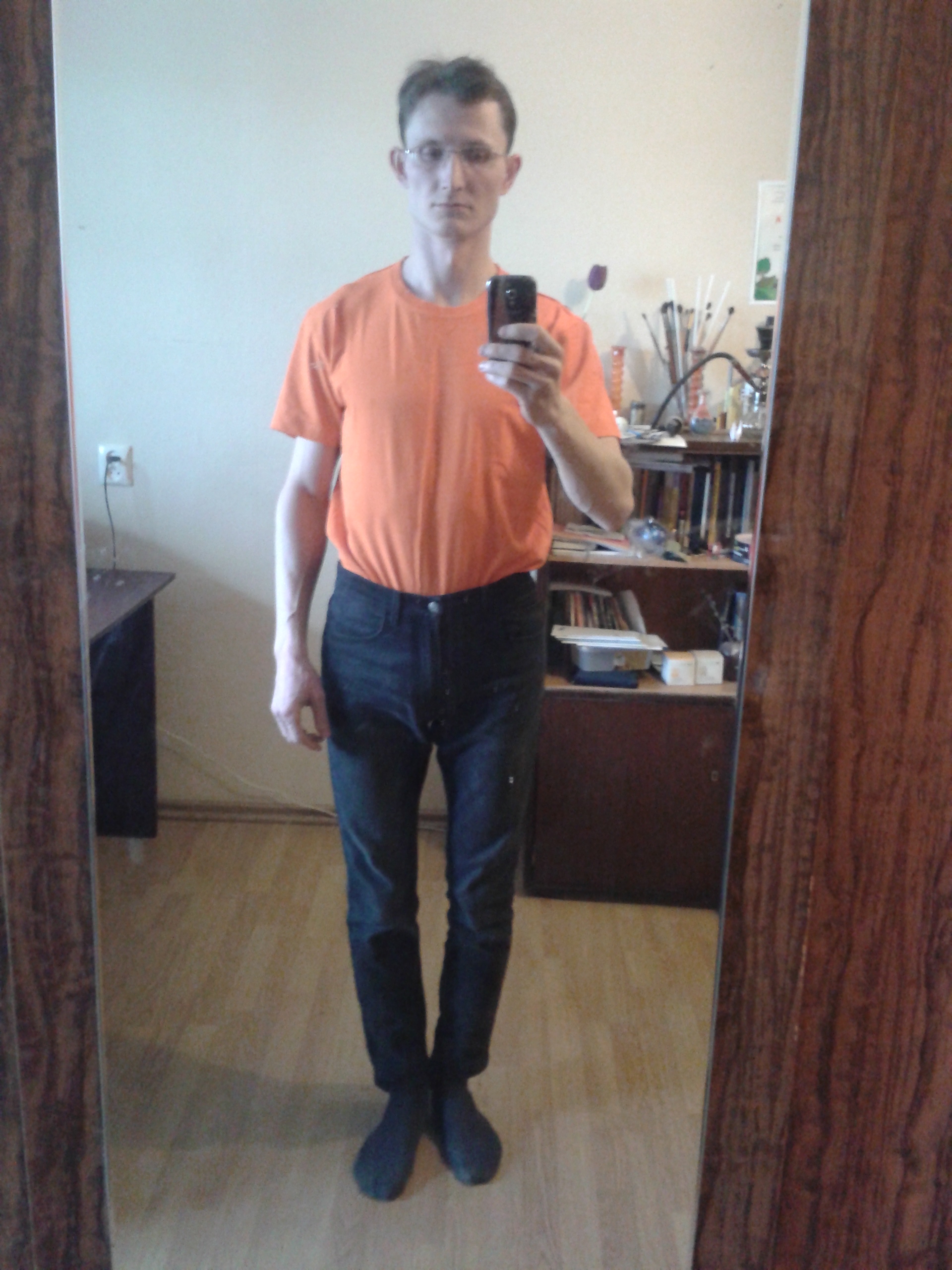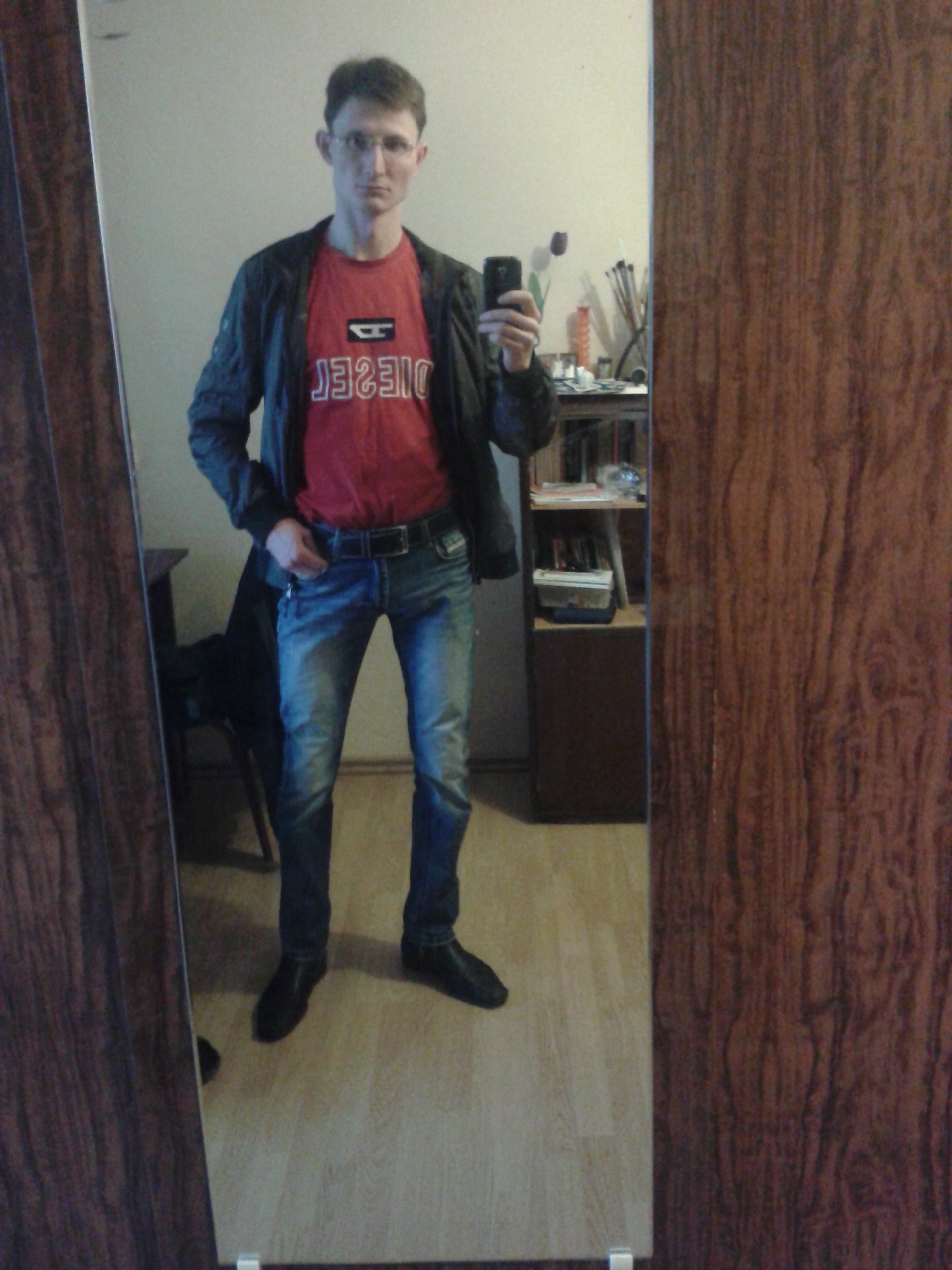И не натягивайте так джинсы. У вас "там" как буд-то хвост какой-то висит, всё выделяется. Это отвратительно.