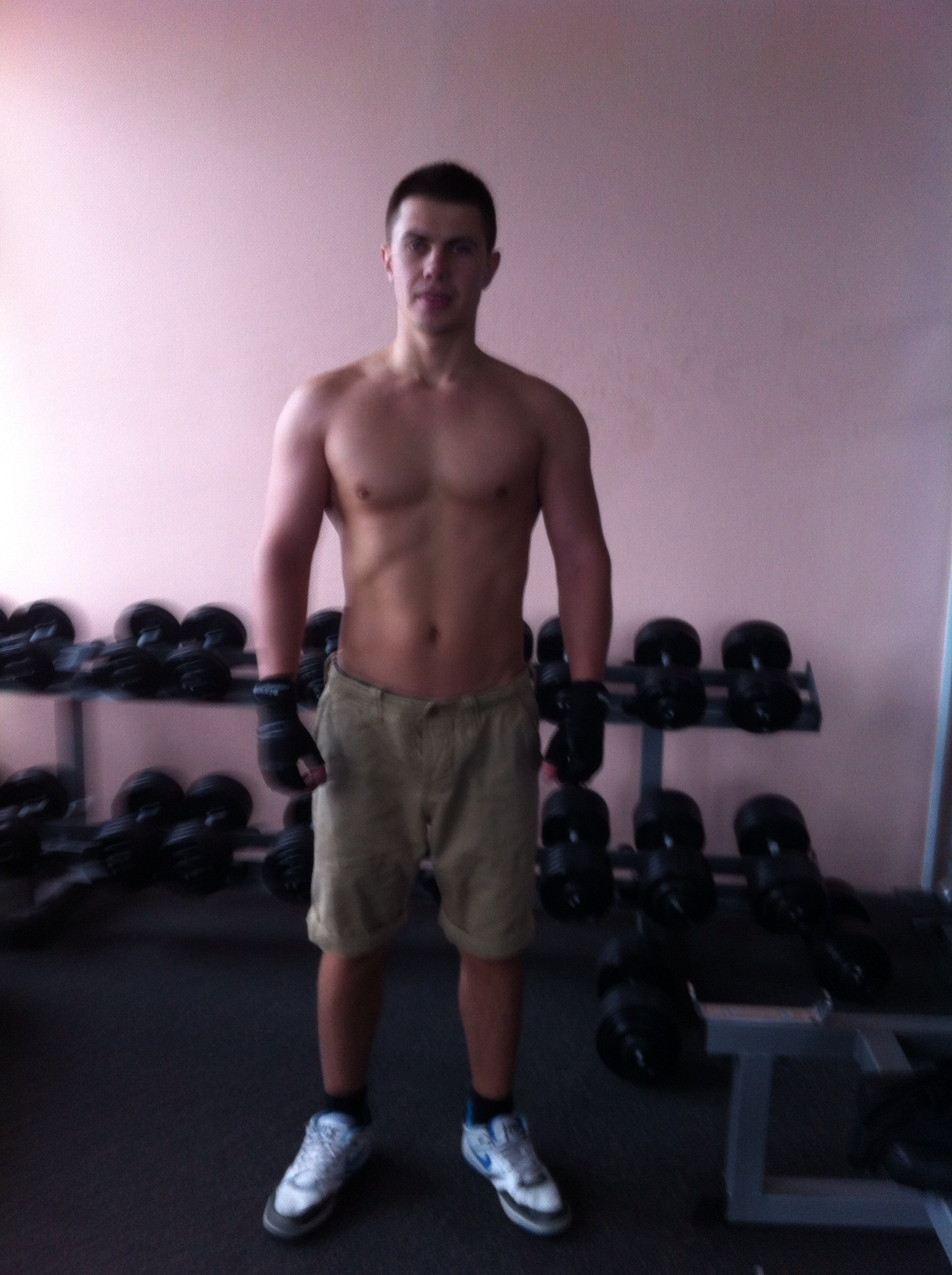Занимаюсь чисто со своим весом: турник, отжимания, скамья для пресса.